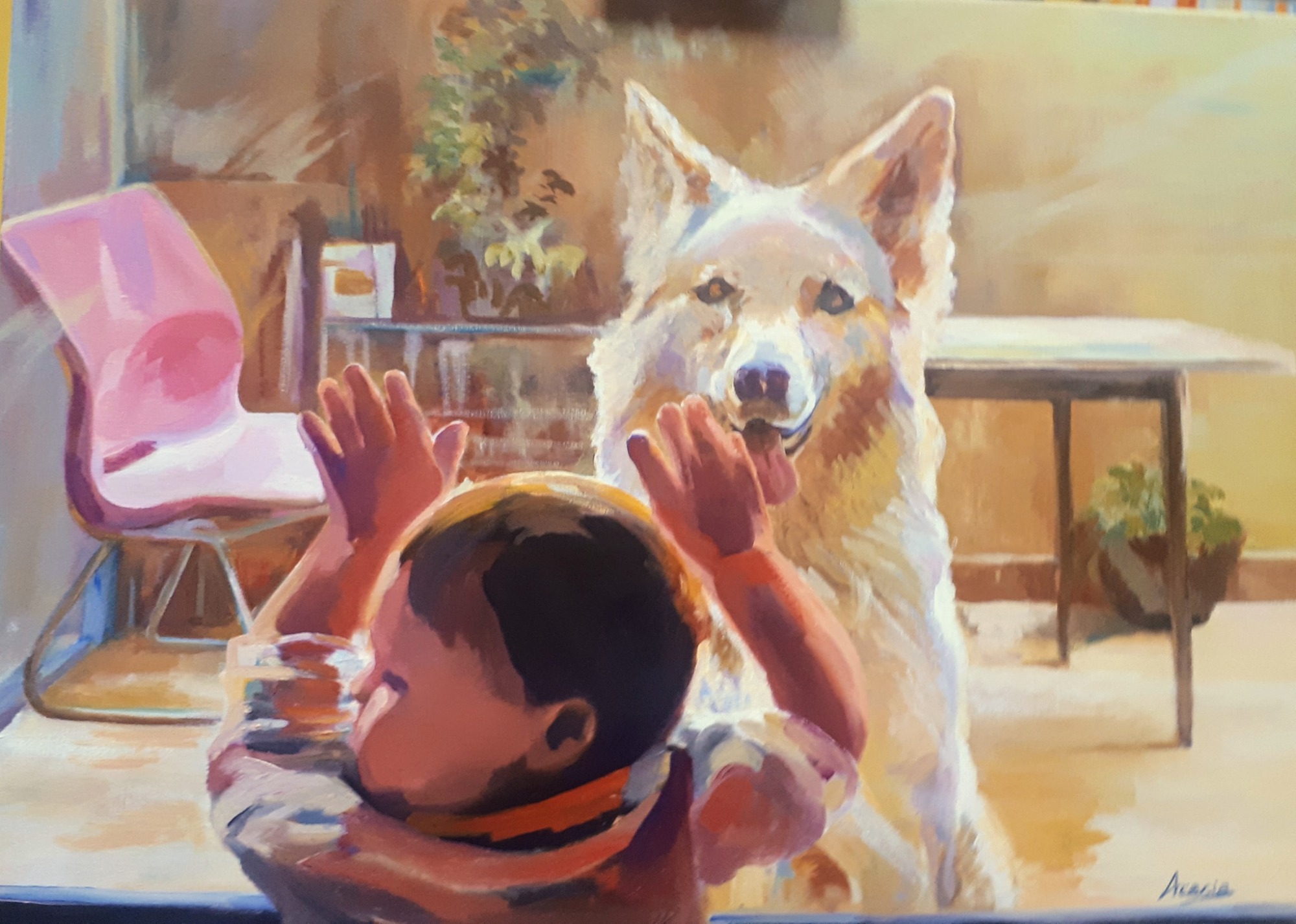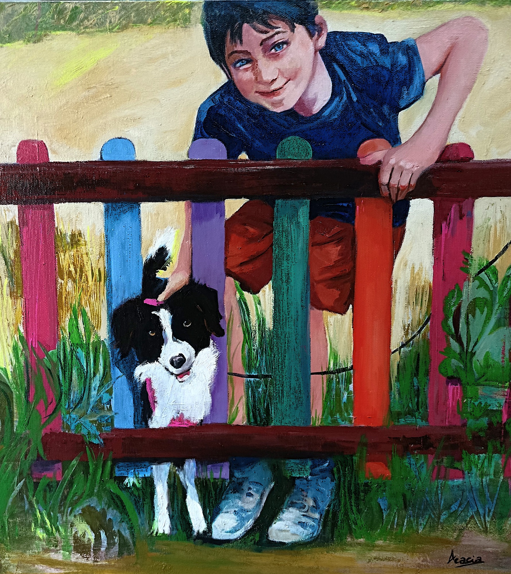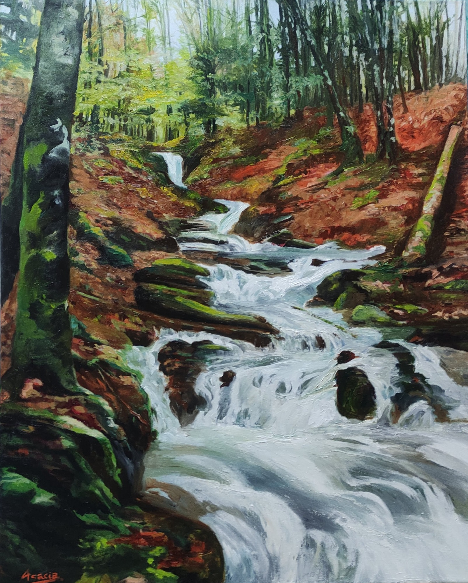 El color, la luz, la forma… adquieren en la pintura de Acacia una importancia destacada. Se aprecia un trazo dinámico y directo y una búsqueda de significado y representación figurativa personal sin descartar la abstracción y también la tendencia al impresionismo. En ella se aprecia el trabajo meditado y la pincelada intuitiva. Las formas y los colores se manifiestan a través de un doble juego espacial, logrando reconciliar dos conceptos de arte totalmente opuestos, acentuando el valor de uno y la fuerza expresiva del otro, mediante el trabajo meditado y la pincelada intuitiva. De esa dualidad nace el arte de Acacia: una pintura vibrante y sonora, colorista, emotiva y serena y donde hay un componente permanente que es el mensaje. Sin duda su obra es la muestra de un mensaje muy personal que la define.